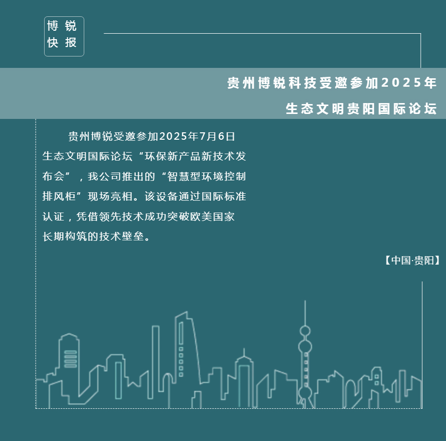 7月6日,以“人与自然和谐共生——共商全球发展绿色转型”为主题的2025年生态文明贵阳国际论坛在贵阳隆重开幕。贵州博锐受邀亮相此次盛会,论坛现场,博锐重磅展出通过国际标准认证的智慧型环境控制排风柜设备。该设备凭借领先技术成功突破欧美国家长期构筑的技术壁垒,展现出我国在环保设备领域的自主创新实力与卓越竞争力。与来自62个国家和地区的近1000名嘉宾一同,共商全球生态文明建设大计。